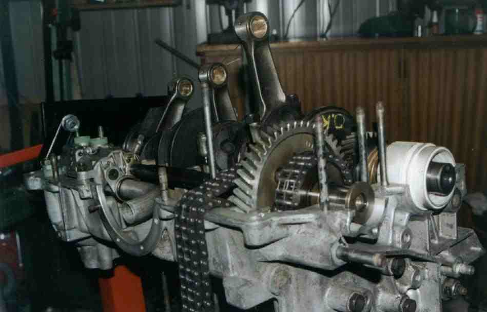Crank and rods installed in case |