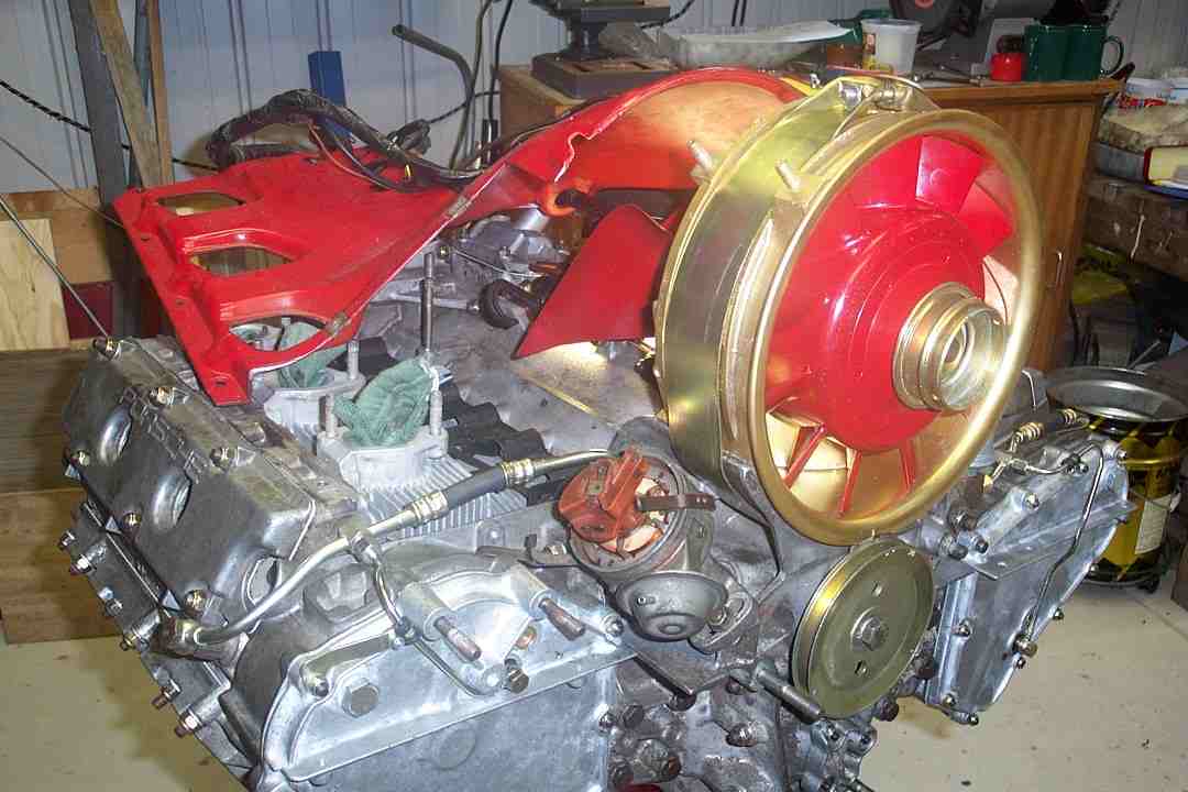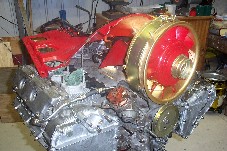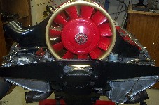 Whilst all this activity was going on, I sand blasted all of the tin ware and applied numberous coats of heat treated black paint. I also rubbed down the cooling fan and shroud and beautified these with a combination of gold and red paint.