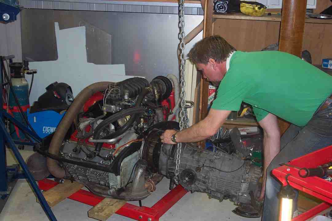 Fitting transaxle with the help of an engine crane |