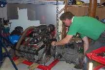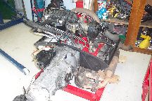 Under she goes - using the engine stand base as a trolley |
